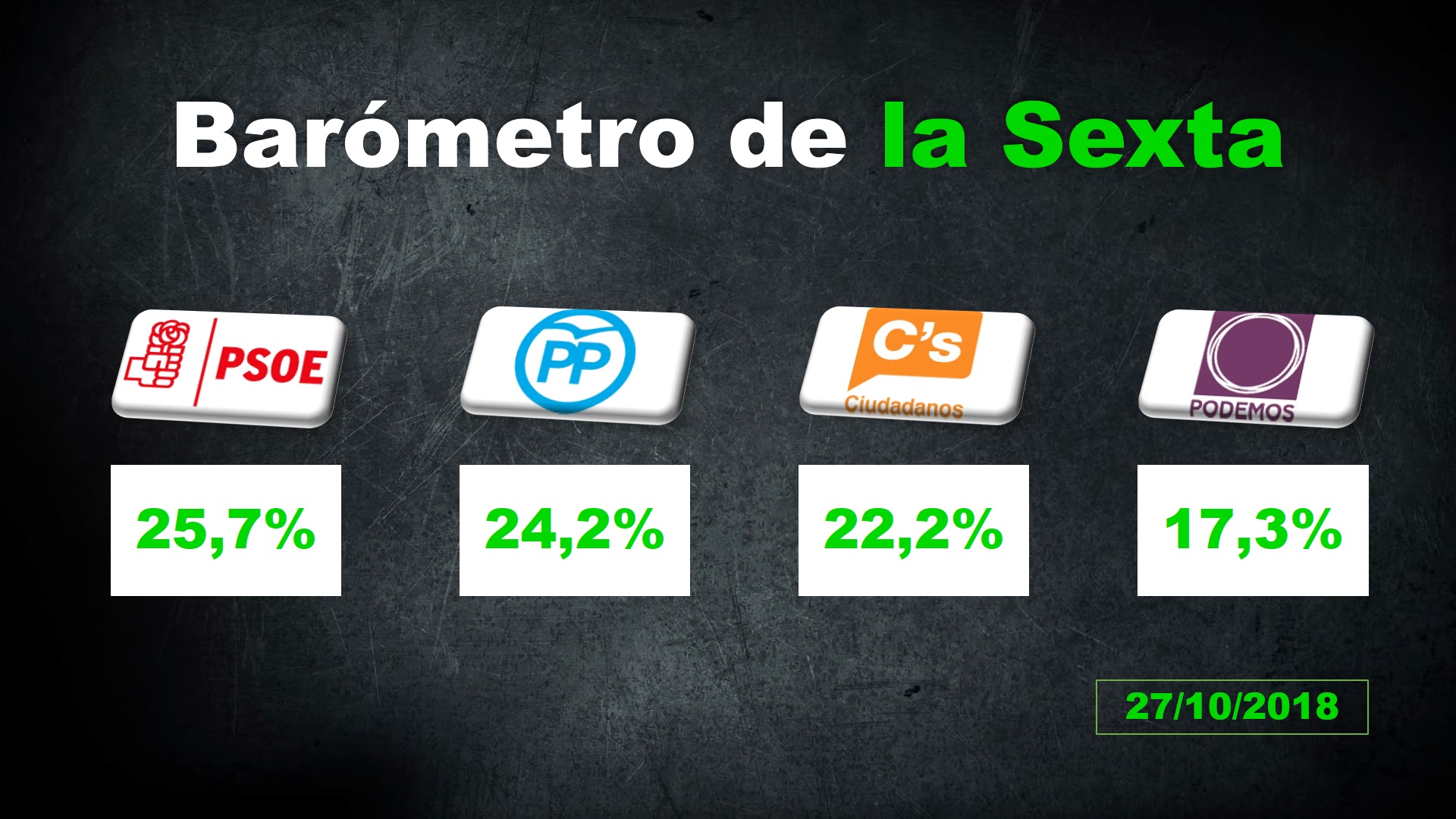 El PSOE ganaría las elecciones generales seguido de cerca por PP y Ciudadanos según la Sexta