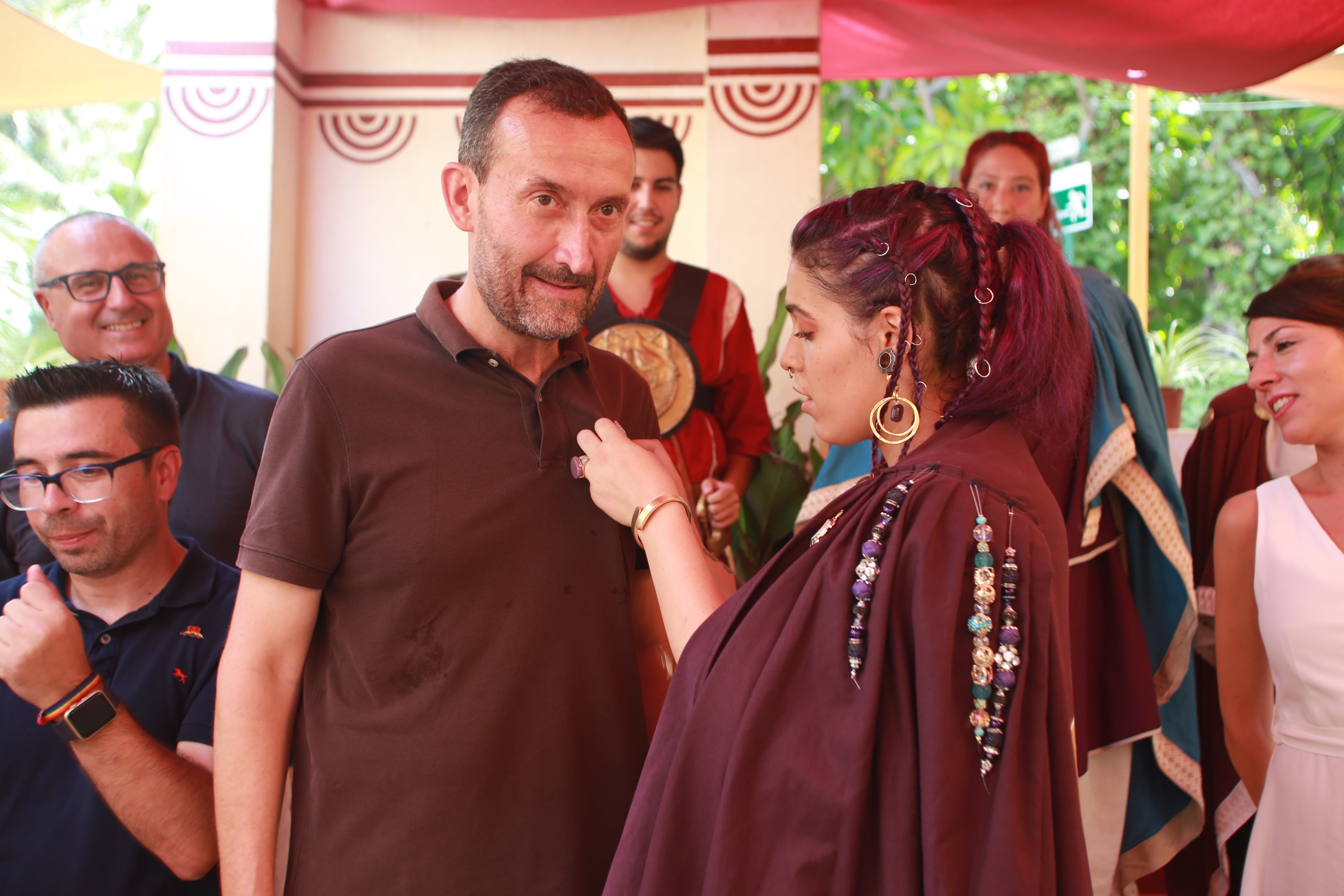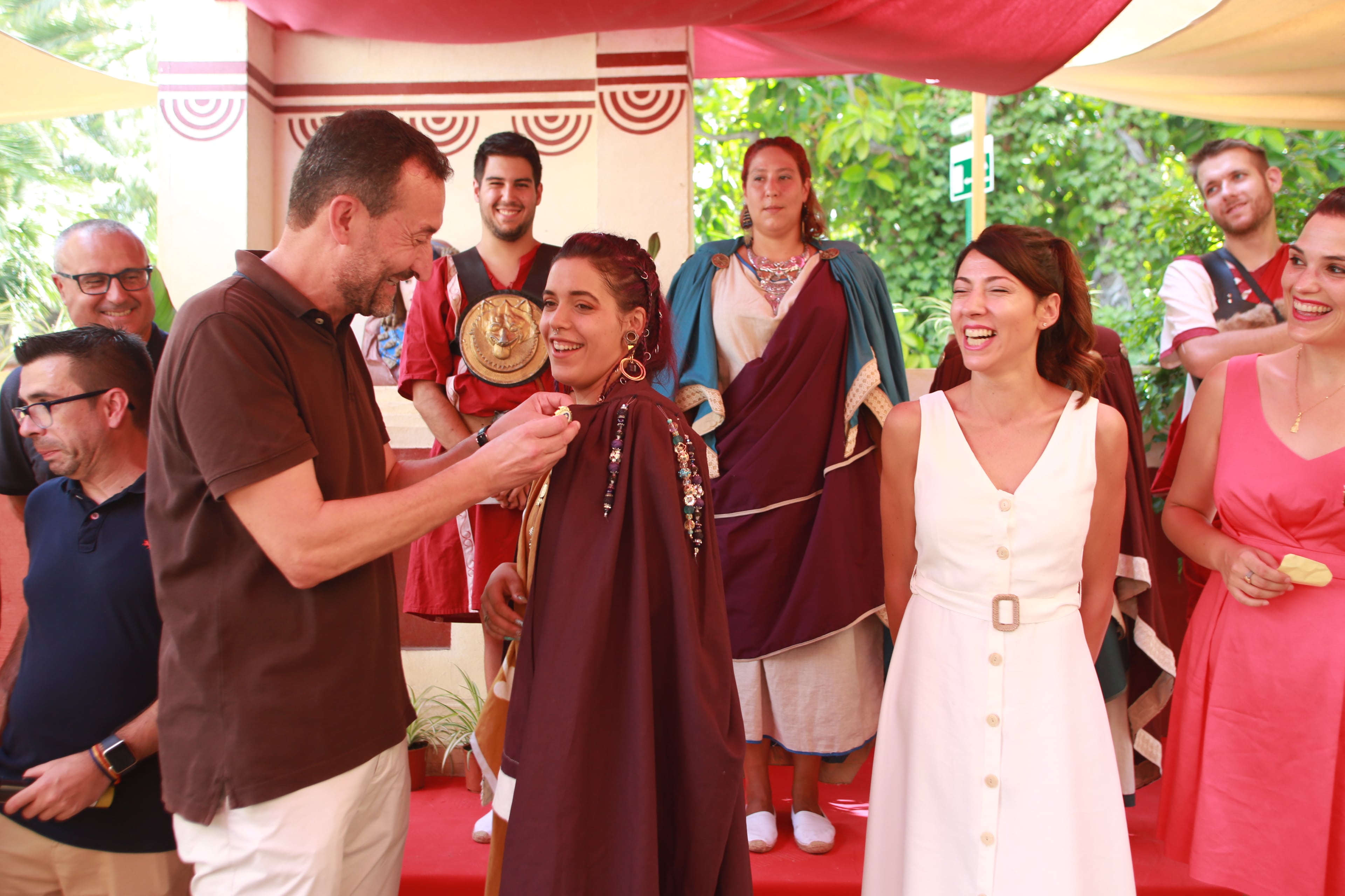 La representación municipal que encabezaba el alcalde ha sido recibida a las puertas del recinto por el presidente de la asociación, José María Romero, y por la Dama de Heliké, Carmina Gomis, entre otros miembros y cargos de Pobladores.