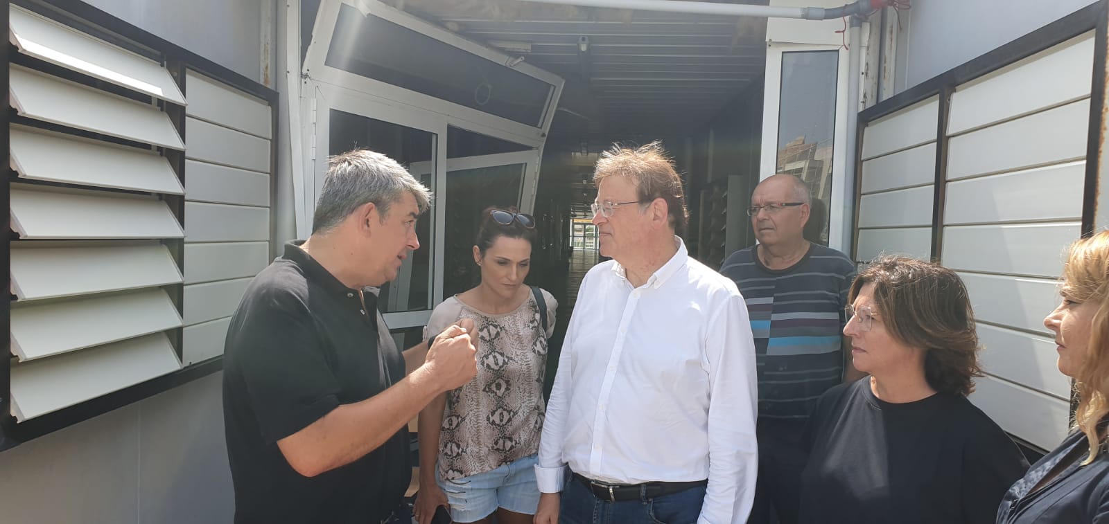 El president, junto con la consellera de Justicia, Interior y Administración Pública, Gabriela Bravo, se ha trasladado a esta localidad de la Vega Baja, que había quedado incomunicada por el agua tras una primera rotura de esta mota, que fue reparada este sábado, y que ha vuelto a romperse.