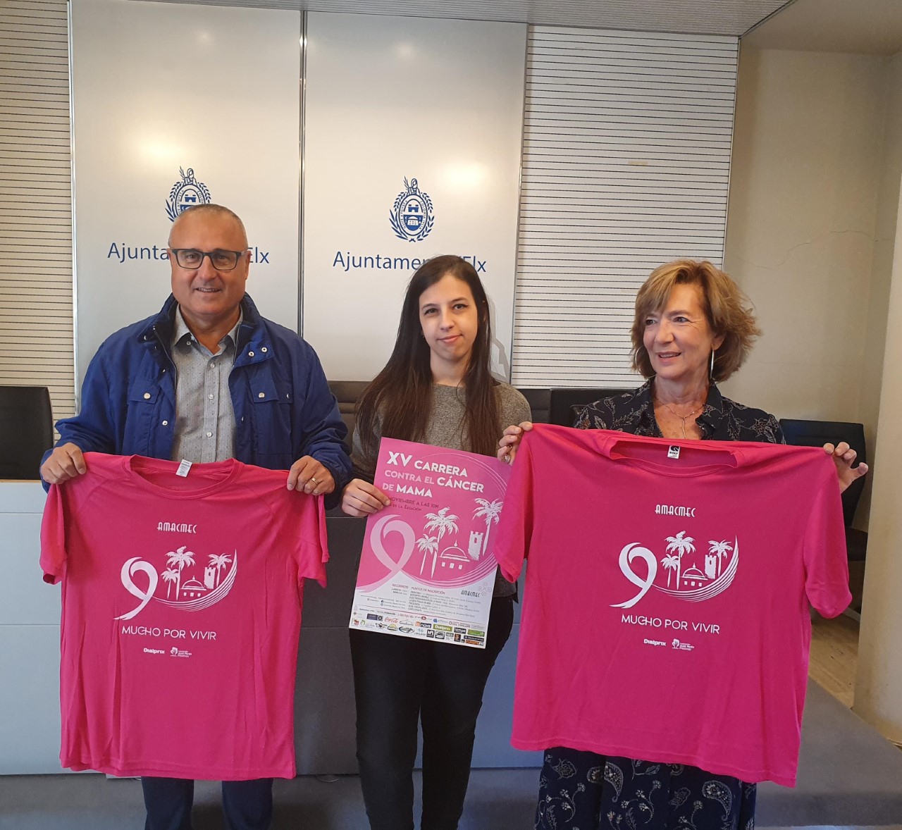 Elche se volcará estos días contra el cáncer de mama, una enfermedad de la que han sido diagnosticadas más de 33 mil mujeres en lo que va de año en toda España. Mostrando su apoyo a todas ellas en la superación, el Ayuntamiento de Elche junto a la Asociación Española Contra el Cáncer de Mama (AMACMEC), Dialprix y la Fundación Juan Peran Pikolinos, ha organizado la XV edición de la carrera contra esta patología que tendrá lugar el próximo 24 de noviembre a las 10 horas en el Paseo de la Estación y en la que los participantes podrán competir en las modalidades de la carrera de 10 kilómetros o la marcha de 5 km. Así lo ha explicado el concejal de Deportes, Vicente Alberola, esta mañana en rueda de prensa, acompañado de la presidenta de AMACMEC, Consuelo García; y la responsable de Marketing de Dialprix, Rosa Campello.