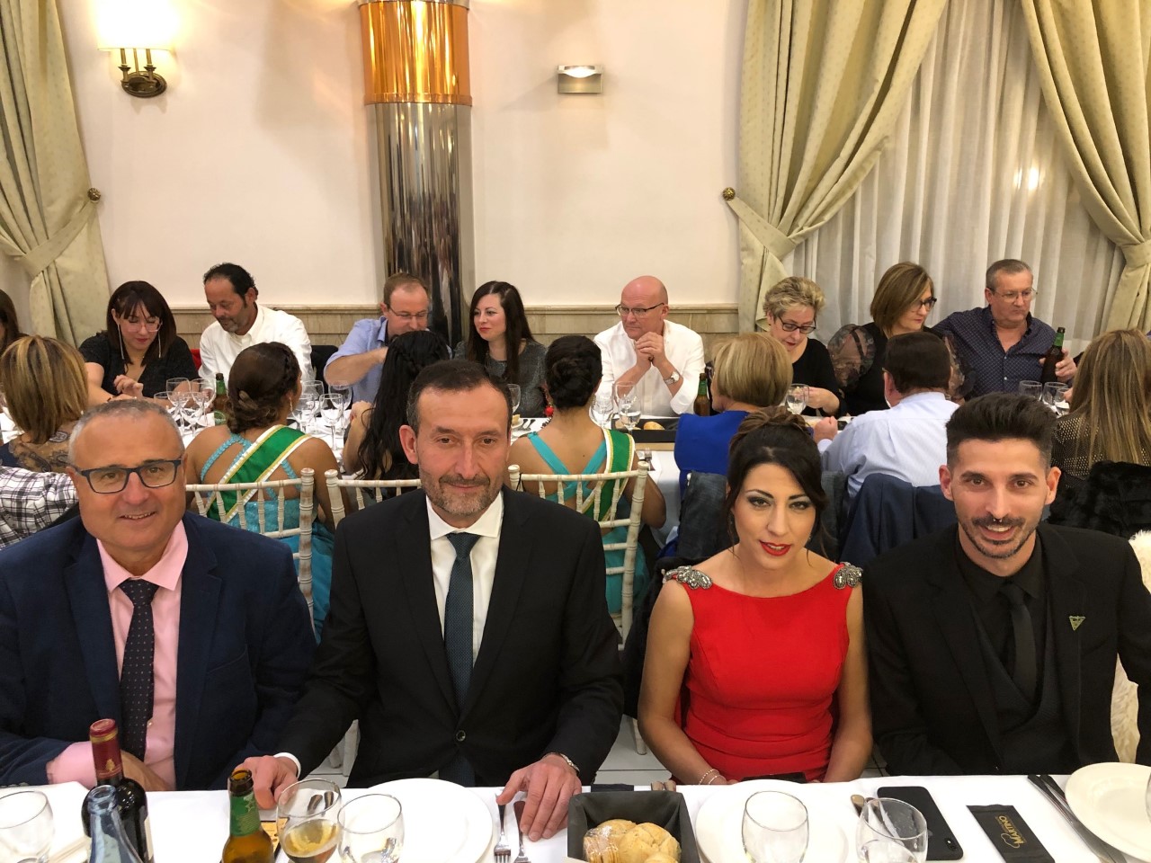 La cita festera comenzó con un cóctel de bienvenida para continuar en el interior de los salones con la entrada del portaestandarte, que el próximo año llevará Alejandro Bernabeu, de Santa Marta-Altabix, y el desfile de las Reinas y Damas de las Fiestas de Elche 2019, además de las de las 12 comisiones de la UFECE.