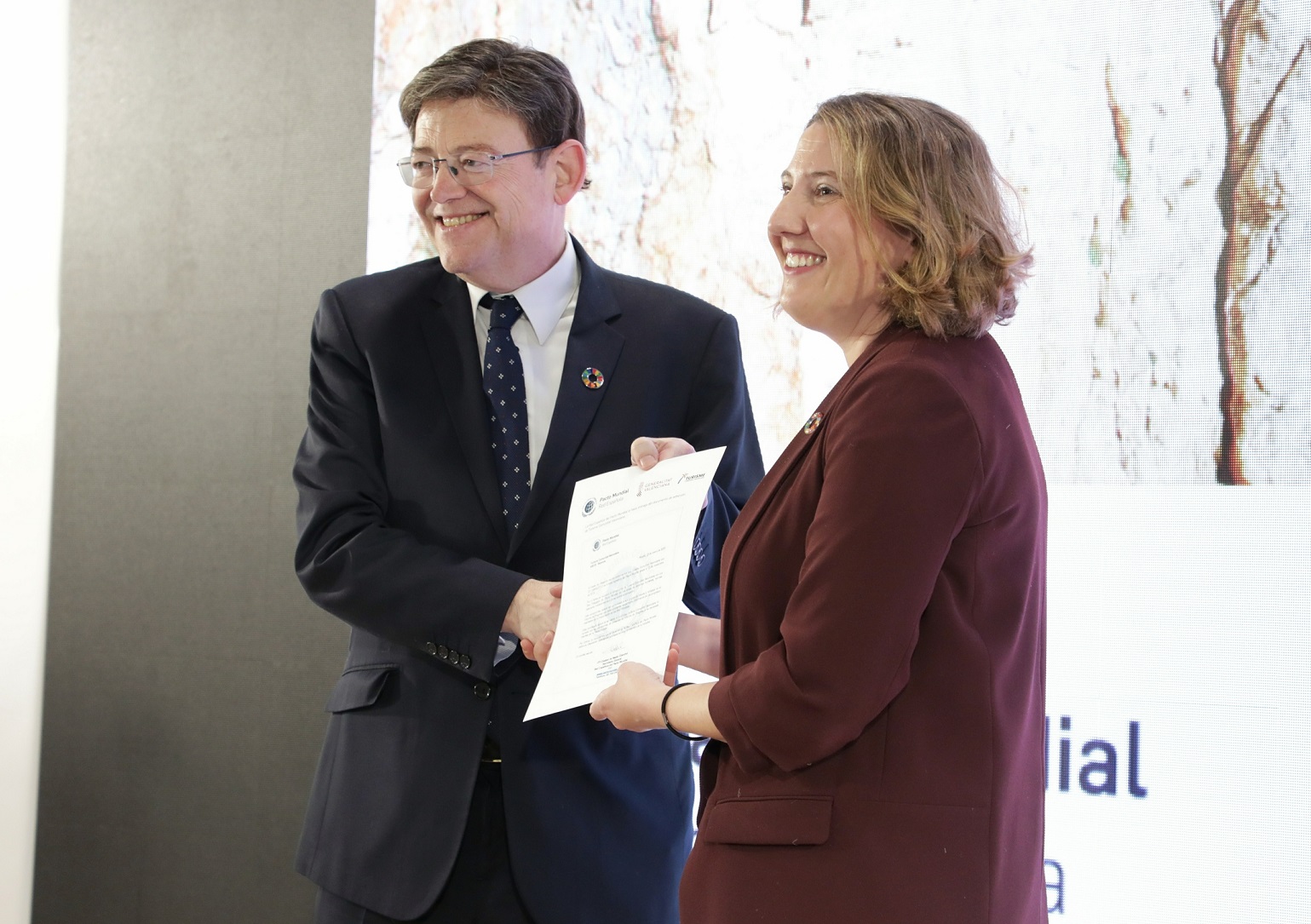 En el acto, se ha hecho entrega al president de la Generalitat del diploma que acredita la adhesión de la Comunitat Valenciana al Pacto Mundial de Naciones Unidas, iniciativa que cuenta actualmente con la colaboración de más de 12.500 entidades en más de 160 países. La Generalitat muestra así su compromiso con los 10 principios universalmente aceptados para promover el desarrollo sostenible en las áreas de derechos humanos y empresa, normas laborales, medio ambiente y lucha contra la corrupción en las actividades y la estrategia de negocio de las empresas, que constituyen el Pacto Mundial.