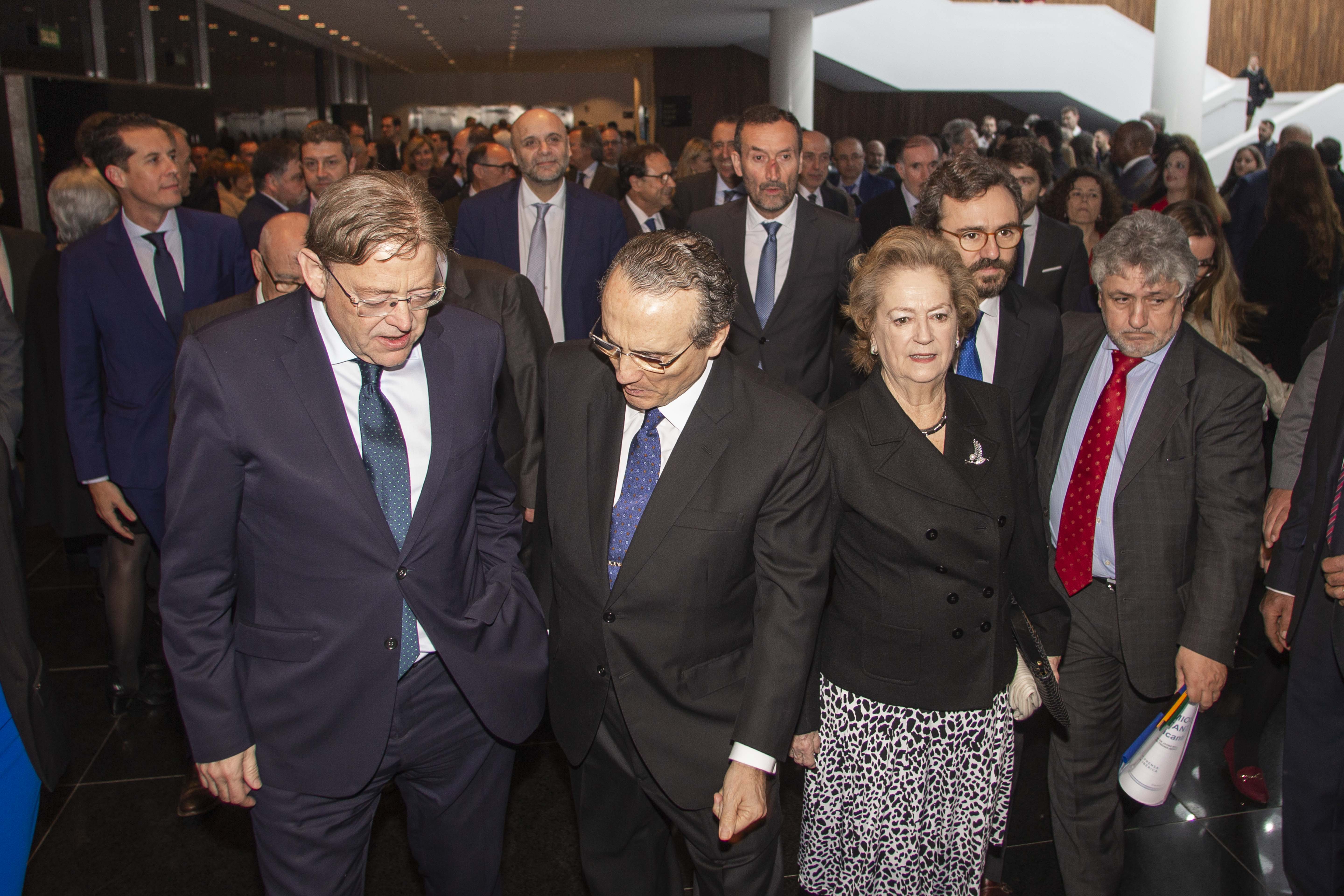 El alcalde Carlos González, acompañado por los concejales Héctor Díez, Mariola Galiana, Vicente Alberola, Puri Vives y Mariano Valera acudieron a la cita para mostrar el debido apoyo a los laureados de Elche. De hecho, el propio González, junto a la consellera de Innovación, Universidades, Ciencia y Sociedad Digital, Carolina Pascual, entregó el premio al Parque Científico por su década de historia, representado por la directora del mismo, Tonia Salinas, y el rector de la UMHE, Juan José Ruiz.