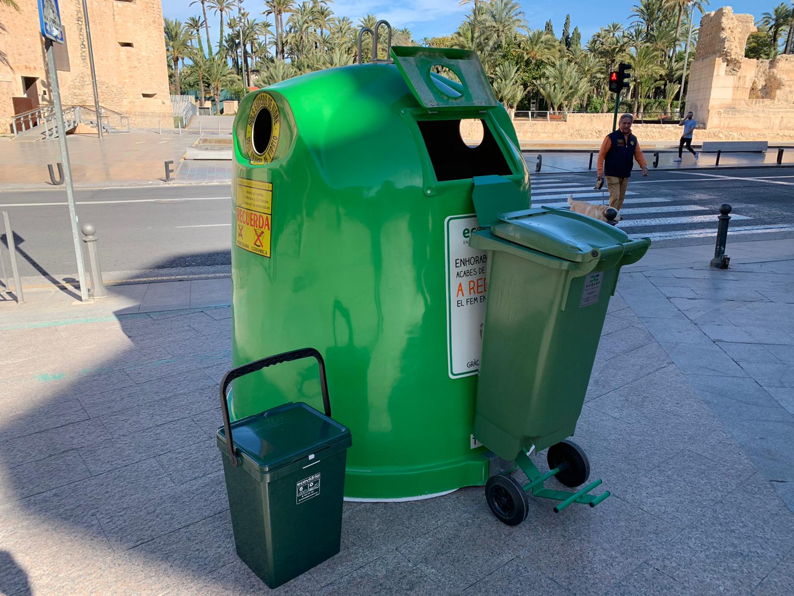 El Ajuntament d’Elx reparte contenedores especiales en los negocios de hostelería para incrementar un 20% el reciclaje de vidrio