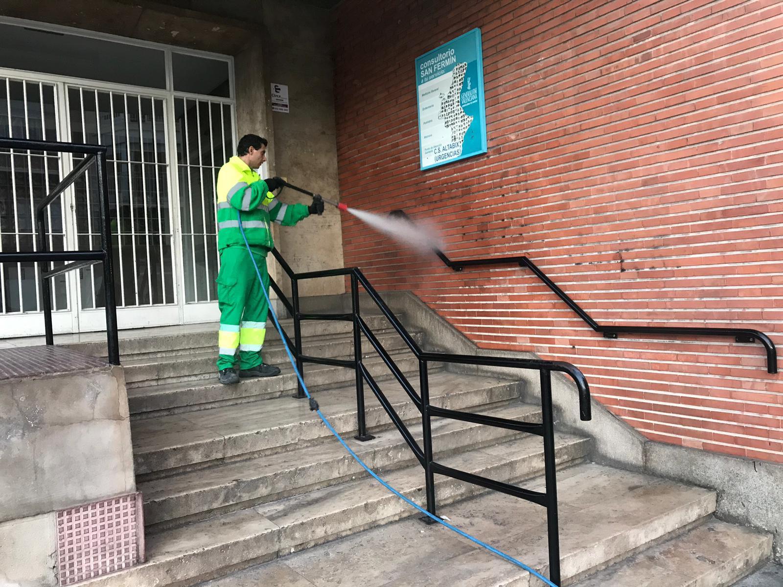 El Ayuntamiento y Urbaser establecen un dispositivo para priorizar la limpieza y desinfección del entorno de los centros sanitarios, farmacias, mercados de abastos y supermercados