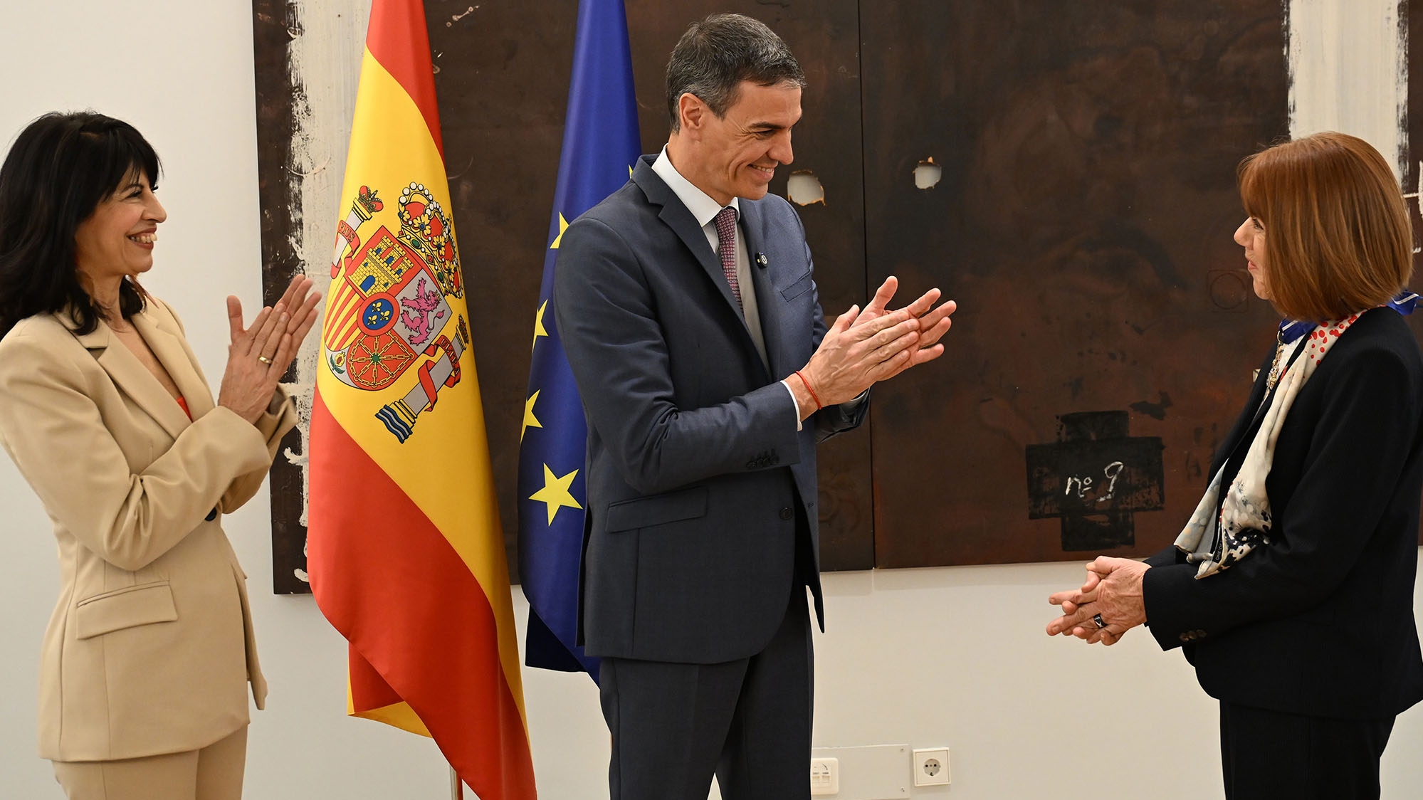 El presidente del Gobierno, Pedro Sánchez, ha recibido este martes en el Palacio de la Moncloa a Gisèle Pelicot, a quien ha entregado la Encomienda de la Orden del Mérito Civil en reconocimiento a su trayectoria y a su papel en la denuncia y visibilización de la violencia de género.